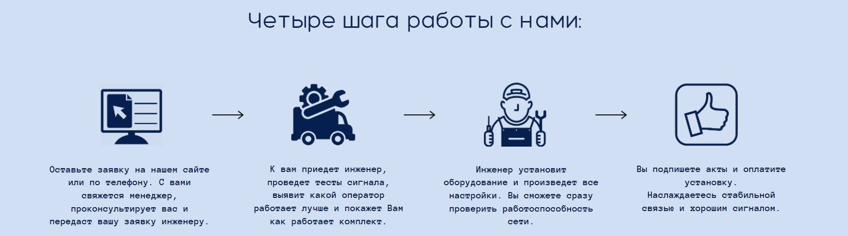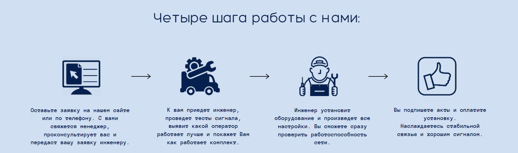 Комплекты содержат все необходимое для монтажа: внешняя антенна, модем 3G/4G, Wi-Fi роутер.